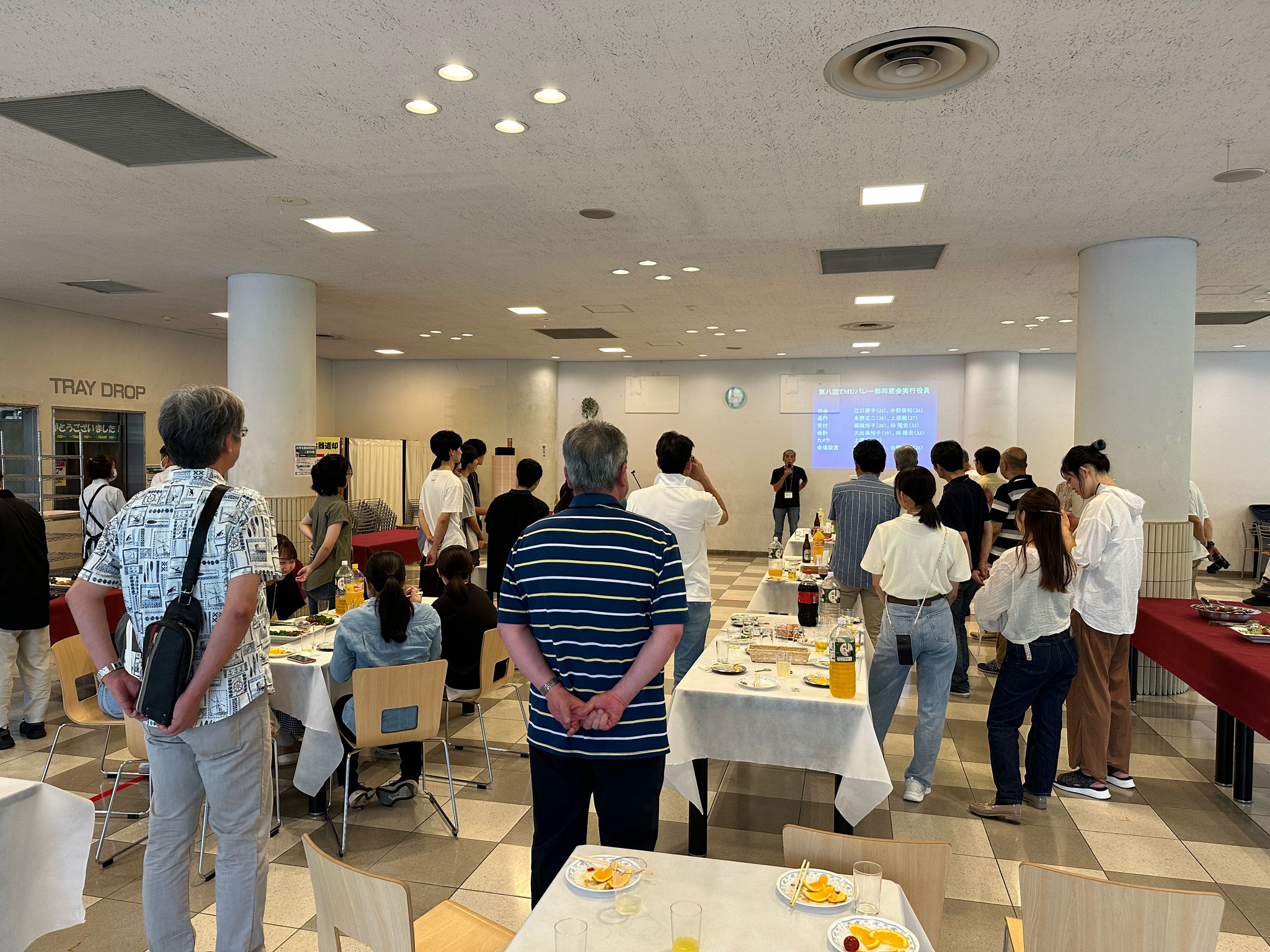 総会に続けて、2019年以来4年ぶりの懇親会が催されました。現役部員も参加して、参加人数はやや少なかったものの、会員同士は久しぶりの顔合わせで懐かしい話に花が咲きました。また現役部員の皆さんとも久々に交流が図れました。直接会場にお越しいただけなかった会員の皆さまからもたくさんのメッセージをいただきましたので、会場でご紹介いたしました。